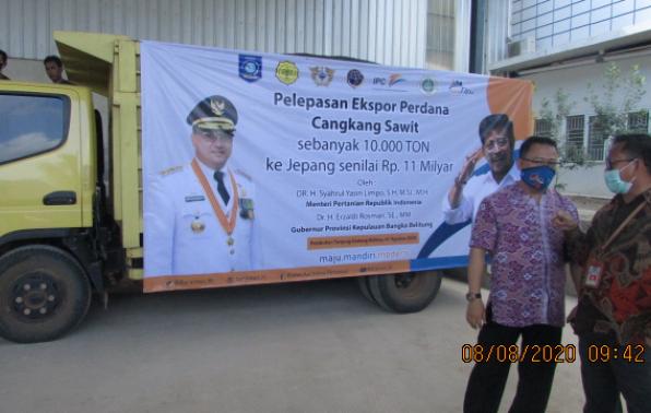 Sebelumnya Menteri Pertanian, Syahrul Yasin Limpo dan Gubernur Kepulauan Bangka Belitung (Babel), Erzaldi Rosman, melepas secara langsung ekspor perdana cangkang sawit sebanyak 10. 000 ton ke Negara Jepang senilai 11 Miliyar, Sabtu Pagi (8/8) di halaman PT. Bangka Asindo Agri (BAA) Kenanga Kabupaten Bangka.