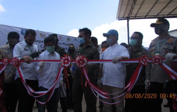 Kenanga, Sungaliat Bangka-Pemerintah Provinsi Kepulauan Babel melalui Dinas Perindustrian dan Perdagangan (Disprindag) Provinsi Kepulauan Bangka Belitung (Babel) bersama Tim Koordinasi Percepatan Ekspor Komoditi Daerah Kepulaun Babel mendukung penuh ekspor cangkang sawit yang telah dilakukan oleh Menteri Pertanian Dan Gubernur Babel, pada Sabtu Pagi (8/8) di halaman PT. Bangka Asindo Agri (BAA) Kenanga Kabupaten Bangka.
