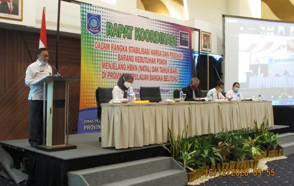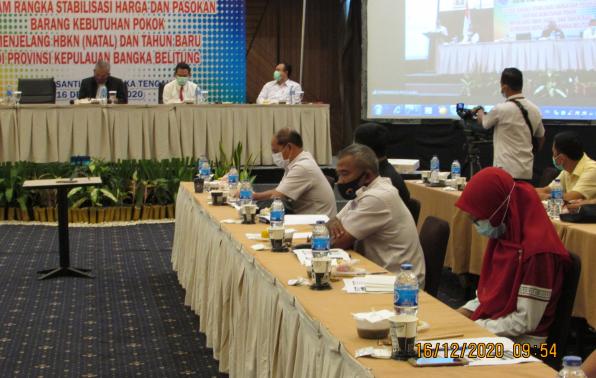 Rakor yang dilaksanakan Rabu pagi (16/12) di Hotel Santika Pangkalpinang mengundang Gubernur Babel, Direktur Reserse Kriminal Khusus Polda Babel, Perum Bulog Cabang Bangka dan Belitung, Satgas Pangan Provinsi Babel, Disperindag Kabupaten dan Kota serta para pelaku usaha untuk membahas kesetabilan harga bahan pokok dan pasokan barang kebutuhan bahan pokok menjelang natal dan tahun baru 2021.