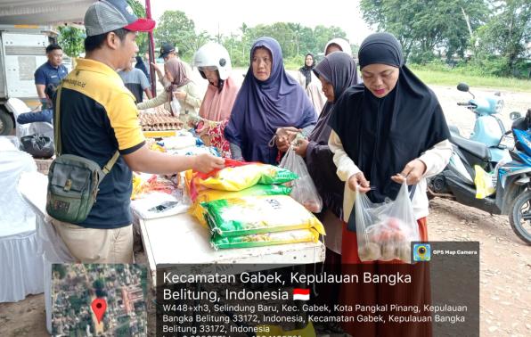 Di lokasi acara nampak, ibu ibu sedang membeli sembako dan distributor sedang melayani dengan semngat. Serta tim Disperindag Provinsi Bangka Belitung mengawasi jalanya Operasi Pasar Murah tersebut.