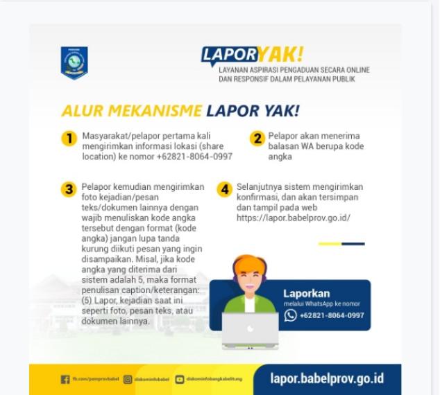 TATA CARA PENGADUAN ONLINE PELAPORAN DARI MANAPUN ATAU JENIS APAPUN SP4N LAPOR DAN LAYANAN PENGADUAN MASYARAKAT (LPM). SILAHAKAN KLIK LINK DIBAWAH INI https://lapor.babelprov.go.id/