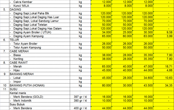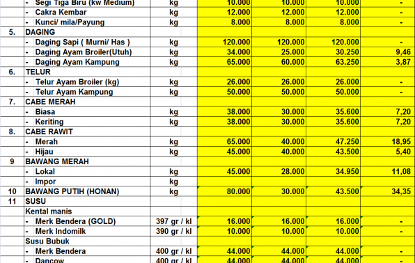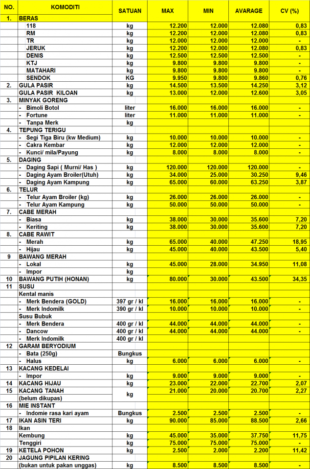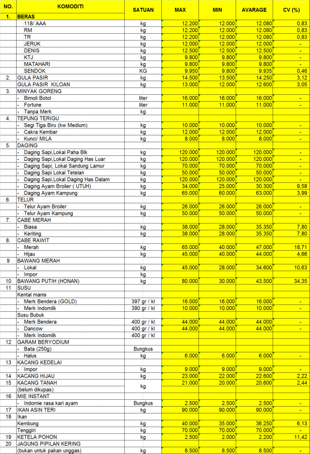 2. HARGA RATA-RATA & COEFISIEN VARIASI (CV %) BEBERAPA BAHAN POKOK PASAR PAGI PERIODE MEI 2019