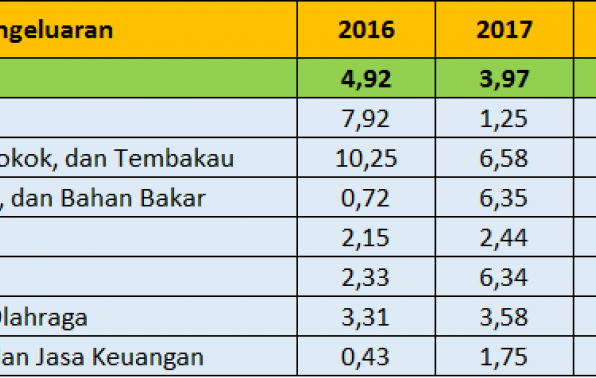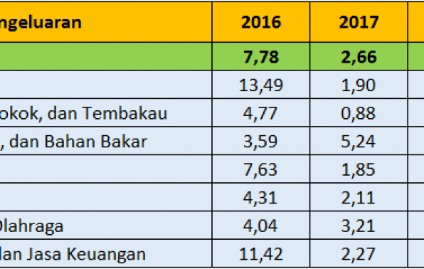 • Inflasi terjadi karena adanya kenaikan harga yang ditunjukkan oleh naiknya sebagian besar indeks kelompok pengeluaran, yaitu: kelompok bahan makanan sebesar 5,41 persen; kelompok makanan jadi, minuman, rokok, dan tembakau sebesar 0,74 persen; kelompok sandang sebesar 1,33 persen;  kelompok kesehatan sebesar 0,17 persen;  kelompok pendidikan, rekreasi, dan olahraga sebesar 0,01 persen; serta  kelompok transpor, komunikasi, dan jasa keuangan sebesar 0,70 persen. Sementara kelompok pengeluaran yang mengalami penurunan indeks yaitu kelompok perumahan, air, listrik, gas, dan bahan bakar sebesar 0,01 persen.