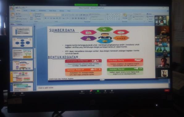 Sementara itu lajut Thomas, pembentukan KAD adalah bertujuan untuk pencegahan korupsi. Oleh sebab itu dalam rapat secara online ini akan di bentuk draf SK keanggotaan Komite Advokasi Daerah Provinsi Kepulauan Babel.