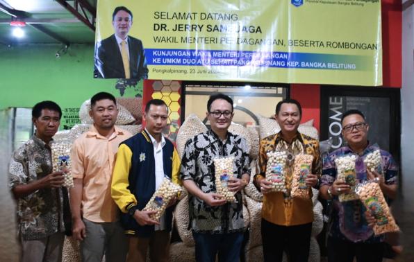 Pangkalpinang-Wakil Menteri Perdagangan (Wamendag), Republik Indonesia (RI) Jerry Sambuaga, melakukan belusukan ke Usaha Mikro Kecil Menengah (UMKM) Duo Ayu Sehati Kota Pangkalpinang, Provinsi Kepulauan Bangka Belitung (Babel), pada Minggu siang (23/6).